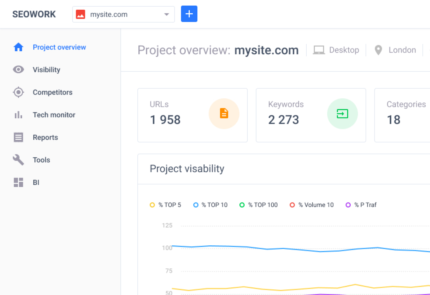 Manténgase informado sobre los datos, rastree a sus competidores, obtenga valiosos conocimientos sobre su sitio web y su SEO, explore el crecimiento potencial del tráfico y las ventas, calcule el ROMI.